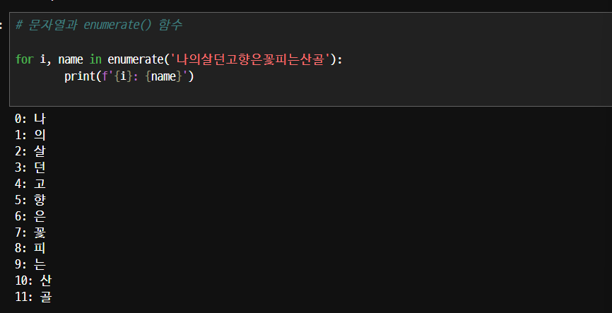 - 문자열이나 컨테이너 자료형을 입력받아, 순번과 요소를 포함하는 오브젝트로 반환