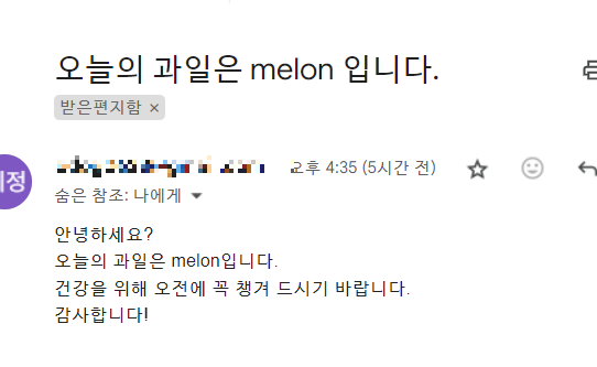 오늘의 요일에 해당되는 과일 이름을 읽어서 아래 메일 내용을 구성하세요.