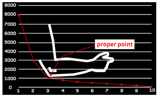 * Elbow Method => 팔꿈치 지점 근방에서 적절한 값을 찾는 것