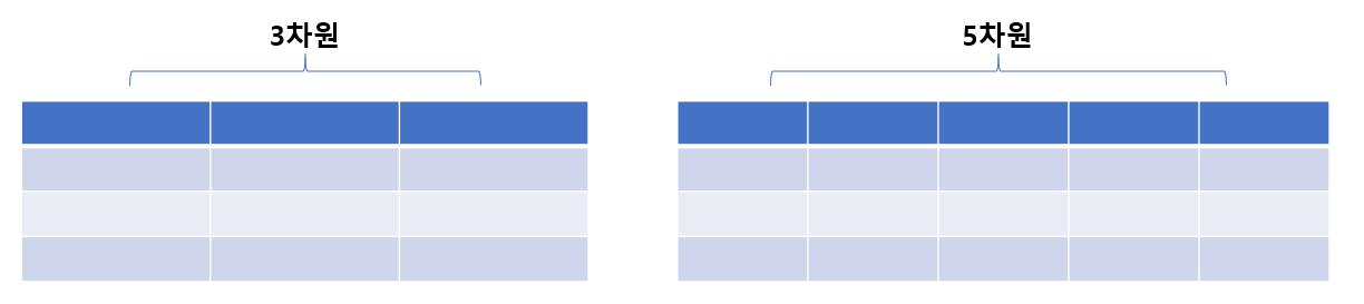 - 고객의 건강상태를 분석할 때, 키/몸무게(2차원) 외 혈압, 체성분 지수, 나이(5차원)으로 하면 더 구체적인 건강상태 분석이 가능