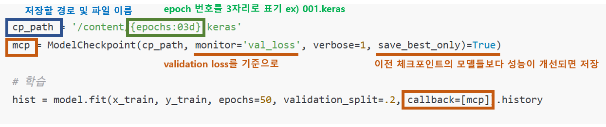 mcp = ModelCheckpoint(cp_path, monitor='val_loss', verbose=1, save_best_only)=True)