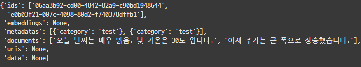 # 조건 조회 : ChromaDB에서는 제공하지 않아, Dataframe으로 변환 후 사용 가능