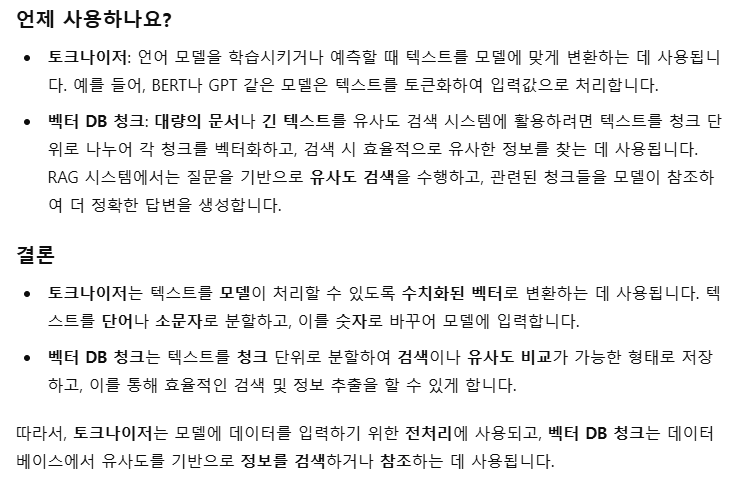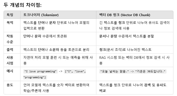 ## 참고1. 토크나이저와 벡터 DB 청크의 차이점