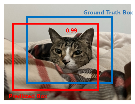 - Predicted Bounding Box의 Confidence Score가 1에 가까울수록 박스 내 Object가 있다고 판단