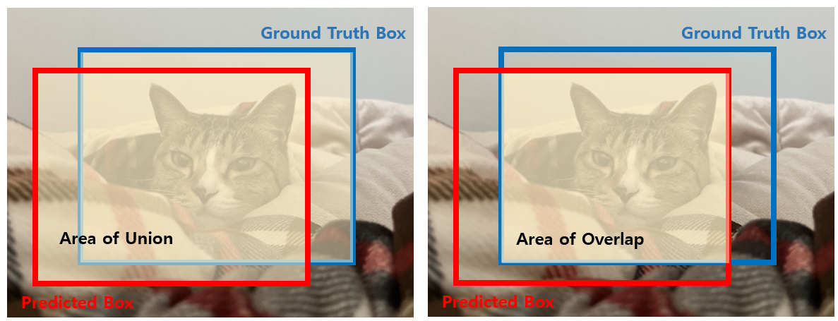 - 겹치는 영역이 넓을수록 좋은 예측 (0~1 사이의 값)