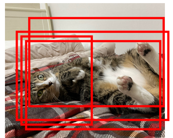 | ① Confidence score 임계값 이하의 Bounding Box 제거 ② 남은 Bounding Box들을 Confidence score 내림차순으로 정렬 ③ 첫 Bounding Box와의 IoU 값이 임계값 이상인 다른 박스들을 제거 (동일박스라고 판단) ④ Bounding Box가 하나 될 때까지 반복 * IoU가 임계값 이상인 경우, 두 Bounding Box가 동일한 Object를 나타내는 것으로 판단하여, 상대적으로 Confidence score가 낮은 Bounding Box를 제거하는 것 - IoU threshold가 낮아질수록 분리 기준이 엄격해진다! (조금만 겹쳐도 동일로 판단!) |