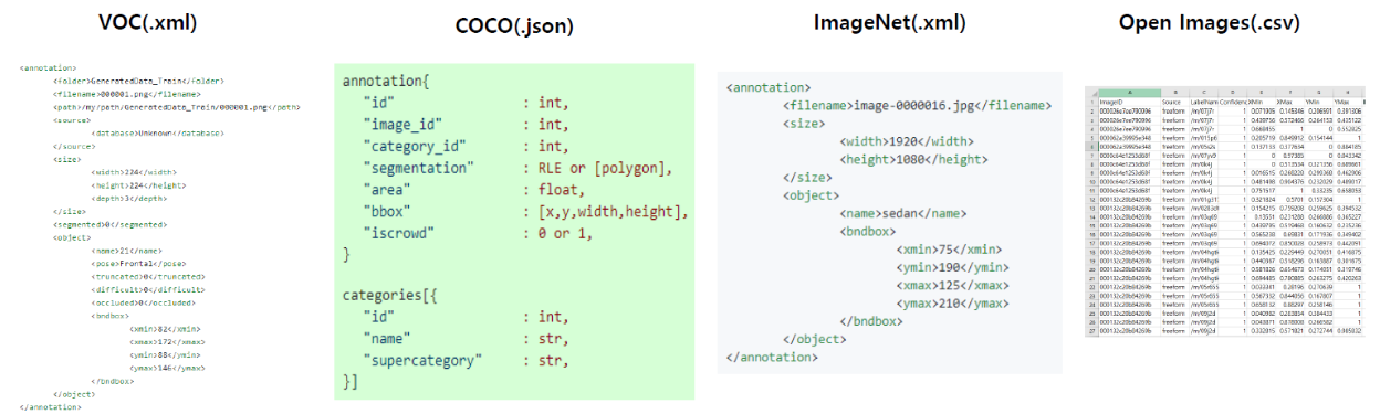 | 테스크종류 | 이미지 분류 | 이미지 분류 | 이미지 분류 | 이미지 분류, 객체 탐지, 세그맨테이션 | 객체 탐지, 세그멘테이션, 키포인트 |