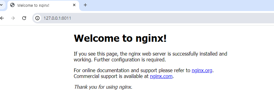 5) chrome에 127.0.0.1:8011로 들어갔을 때, 해당화면이 표시되면 성공