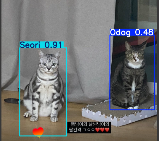 몇몇 구분 안되는 애들은 conf=0.1을 주니 바로 증신 채림.