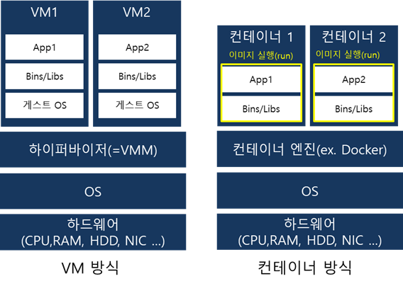 | 가상 머신 | 컨테이너 | |